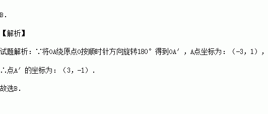 如图,在方格纸上上建立的平面直角坐标系中,将OA绕原点O按顺时针方向旋转180°得到OA′,则点A′的坐标为( )