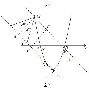 ①若∠P'MR=30°,∠MRP'=90°(也可以是∠MP'R=90°,没有任何影响),如图2,![]()