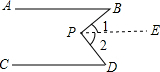 分析 过P作PE∥AB,根据两直线平行,内错角相等,即可得到∠B与∠P、∠D的关系.