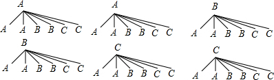 分析 设正方体骰子三组相对面的相同的图案分别为A、B、C,先画树状图展示所有36种等可能的结果数,再找出正方体骰子向上的一面出现相同图案的结果数,然后根据概率公式求解.