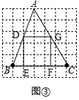 (2)如图③,在正方形网格中,以给定的BC为一边,画出一个斜三角形ABC,使其顶点A在格点上且△ABC折成的“叠加矩形”为正方形.