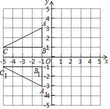 解答 解:△A1B1C1如图所示,△A1B1C1画与△ABC关于x轴对称,A1(-1,-3),B1(-1,-1),C1(-5,-1).