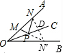 解:正确的作法是:①过点N作角平分线OC的垂线,交另一边OB于N′,