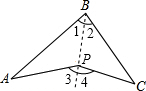 分析:连接BP并延长,然后根据三角形的一个外角等于与它不相邻的两个内角的和列式整理即可.