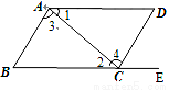如图,给出下列条件:①∠1=∠2;②∠3=∠4;③AD∥BE,且∠D=∠B;④AD∥BE;且∠BAD=∠BCD.其中,能推出AB∥DC的条件为________________________.
