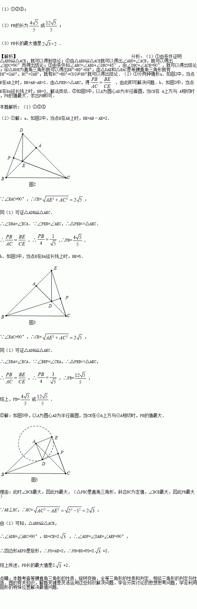 (2)若AB=4,AD=2,把△ADE绕点A旋转,