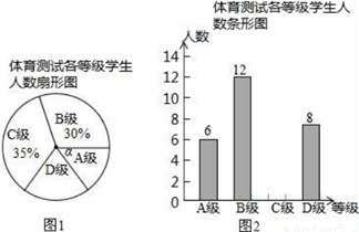 为了解中考体育科目训练情况,某区从九年级学生中抽取了部分学生进行了一次中考体育科测试(把测试结果分为四个等级:A级:优秀;B级:良好;C级:及格;D级:不及格),并将测试结果绘成了如下两幅不完整的统计图.请根据统计图中的信息解答下列问题: