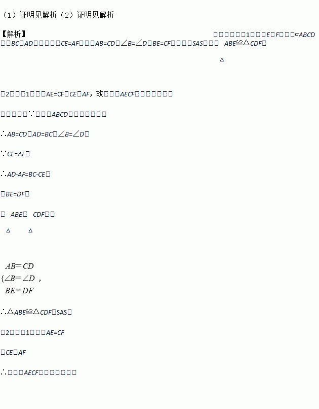 如图所示,在□ABCD中,点E,F分别在边BC和AD上,且CE=AF,