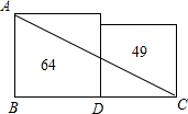 如图,两个正方形的面积分别是64和49,则AC的长为
