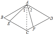 分析 先证明△ABC和△ACD为等边三角形,得出AB=AC=AD,证出∠1=∠2,根据ASA证明△AEC≌△AFD,得出CE=DF,即可求出CE+CF.