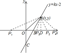 令x=0,得到y=-2,即C(0,-2);令y=0,得到x=$\frac{2}{k}$,即B($\frac{2}{k}$,0),
