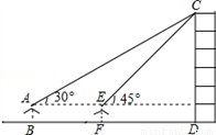 某数学兴趣小组在学习了《锐角三角函数》以后,开展测量物体高度的实践活动,测量一建筑物CD的高度,他们站在B处仰望楼顶C,测得仰角为30°,再往建筑物方向走20m,到达点F处测得楼顶C的仰角为45°(BFD在同一直线上).已知观测员的眼睛与地面距离为1.5m(即AB=1.5m),求这栋建筑物CD的高度.(参考数据: