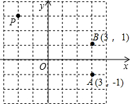 如图,A,B两点坐标分别是(3,-1),(3,1),请你画出平面直角坐标系并标出点P(-2,3)的位置.