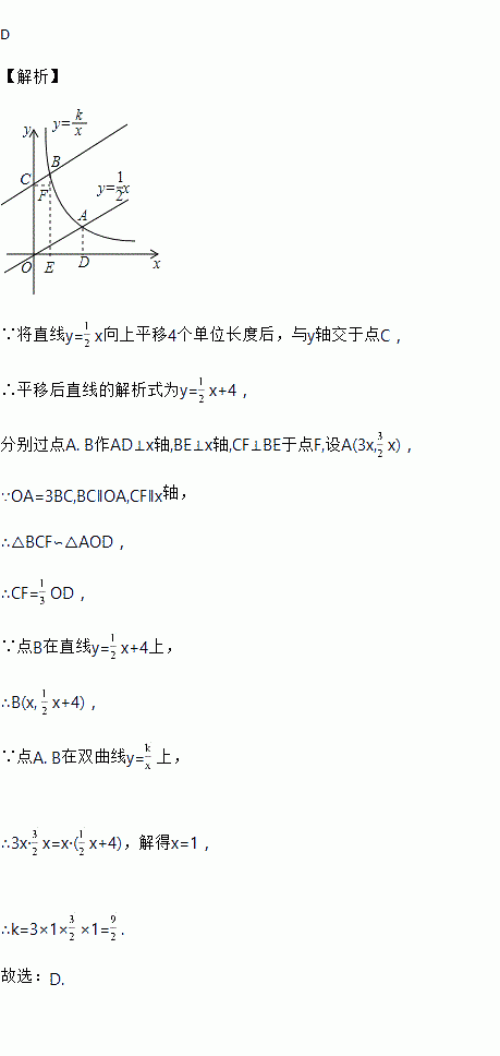 (k>0,x>0)交于点B,若OA=3BC,则k的值为( )