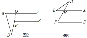 分析 对于图2,先根据平行线的性质得到∠AGD=∠EFD,然后根据三角形外角性质易得∠EFD=∠B+∠D;对于图3,利用同样的方法可得∠EFD=∠B+∠D.