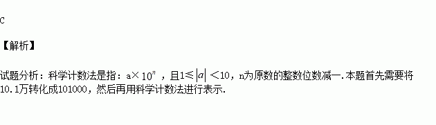 盐城市2015年初中毕业生人数达10.1万.数据10.1万用科学记数法表示为( )