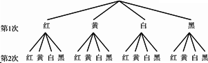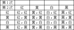 在一个不透明的盒子里,装有红、黄、白、黑4个小球,它们除颜色不同外,其余均相同,盒子里的小球已经摇匀,先从盒子里随机摸出一个小球,记下颜色后放回,摇匀后再随机地摸出一个小球并记下颜色.