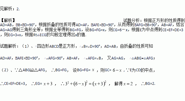 (1)求证:△ABG≌△AFG;(2)求BG的长.