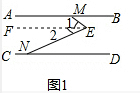 分析 (1)过点E作EF∥AB,根据两直线平行,内错角相等可得∠BME=∠1,∠END=∠2,然后相加即可得解;