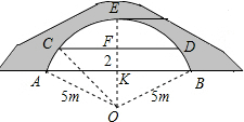 分析 先根据垂径定理找出圆心O,连接OA,OB,OC,过点O作OE⊥CD于点F,由∠AOB=120°可得出∠OAB的度数,根据直角三角形的性质得出OK的长,再根据勾股定理得出CF的长,进而得出CD的长与3.2m相比较即可.