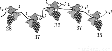 一条葡萄藤上结有五串葡萄,每串葡萄的粒数如图所示(单位:粒),则这组数据的中位数为 ( )