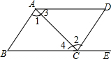 分析 先根据平行线的性质求出∠3的度数,再由补角的定义即可得出结论.
