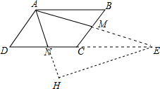 分析 首先延长DC和AM交于E,过点E作EH⊥AN于点H,易证得△ABM≌△ECM,即可得AB=$\frac{2}{3}$NE,然后由AM=4,AN=3,且∠MAN=60°,求得AH,NH与EH的长,继而求得EN的长,则可求得答案.