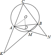 分析 由条件可证明△ABK∽△BNA,根据相似三角形的性质可得AK•BN=AB2,再由圆的半径求得AB的长,可求得答案.