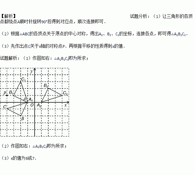 (3)作出点C关于x轴的对称点P.若点P向右平移x(x取整数)个单位长度后落在△A2B2C2的内部,请直接写出x的值.