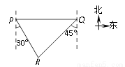 岛P位于岛Q的正西方,由岛P、Q分别测得船R位于南偏东30°和南偏西45°方向上.符合条件的示意图是