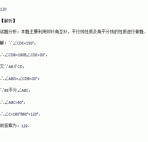 A.50° B.60° C.140° D.160°