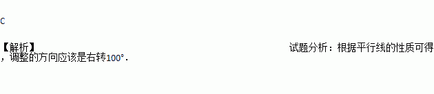 A. 右转800 B. 左转800 C. 右转1000 D. 左转100°