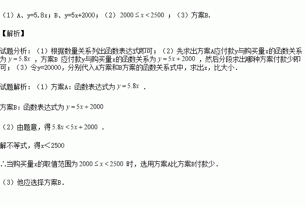 (2)求购买量x在什么范围时,选用方案A比方案B付款少;