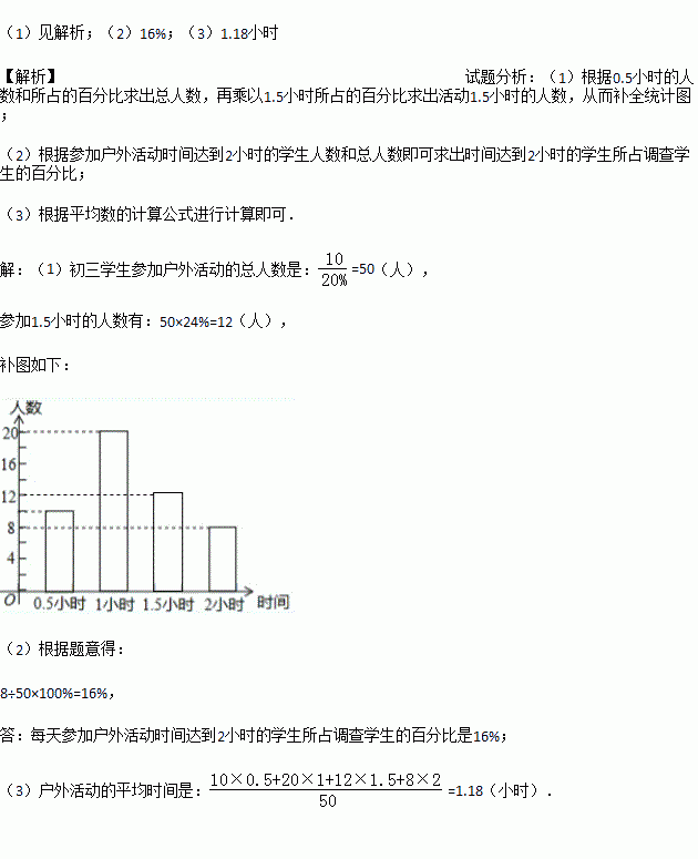 (3)这批参加调查的初三学生参加户外活动的平均时间是多少.