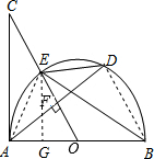 (2)连接BD、AF,作FG⊥AB于G,由直径直径对的圆周角是直角得∠ADB=90°,由OC⊥AD求得OE∥BD,即可证得四边形OBDE是平行四边形,得出ED=OB=5,OE=DB,由OA=OB,OE∥DB,得出AF=DF,根据RT△EFD≌RT△OFA得出EF=FO,根据线段垂直平分线的性质得出AE=AO,证得△AOE是等边三角形,即可求得EG=$\frac{\sqrt{3}}{2}$OE=$\frac{5\sqrt{3}}{2}$,根据三角形面积公式求得即可.