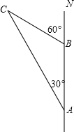 ∵AB=15×2=30(海里),∠CAB=30°,∠CBN=60°,