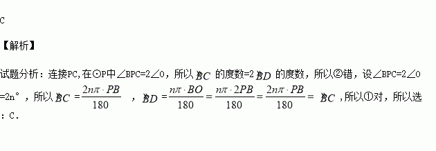 如图,OD、OB是⊙O的两条半径,以OB为直径的⊙P交OD于点C,那么对于结论:①