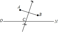 分析:先连接AB,再作线段AB的垂直平分线交直线ON于点C,则点C即为所求点.