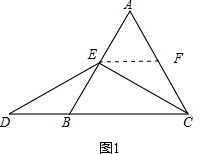解答 解:(1)如图1,过点E作EF∥BC,交AC于点F,![]()