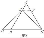 (2)如图2,过点E作EF∥BC,交AC于点F,![]()
