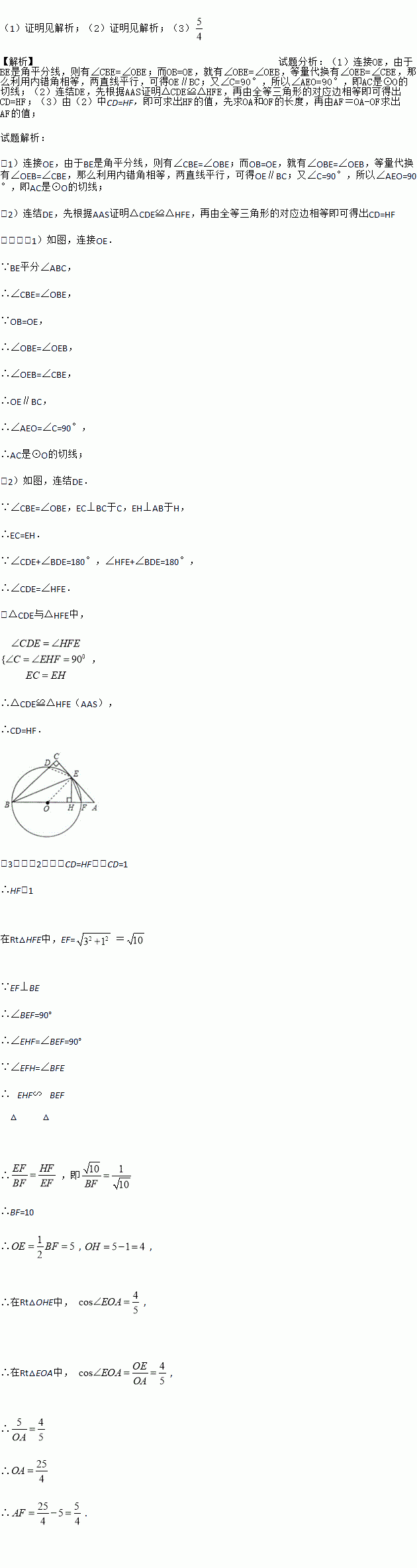 (3)若CD=1,EH=3,求BF及AF长.