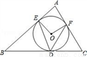 如图,⊙O 内切于△ABC,切点 D,E,F 分别在 BC,AB,AC 上.已知∠B=50°,∠C=60°,连结 OE,OF,DE,DF,那么∠EDF 等于__________.