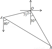 如图,甲、乙两渔船同时从港口O出发外出捕鱼,乙沿南偏东30°方向以每小时15海里的速度航行,甲沿南偏西75°方向以每小时15