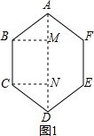 (2)分别求出两个正六边形的对角线,然后求出它们的比即可.