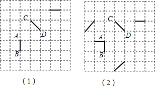 (1)请你在图(1)中画出线段AB关于线段CD所在直线成轴对称的图形;