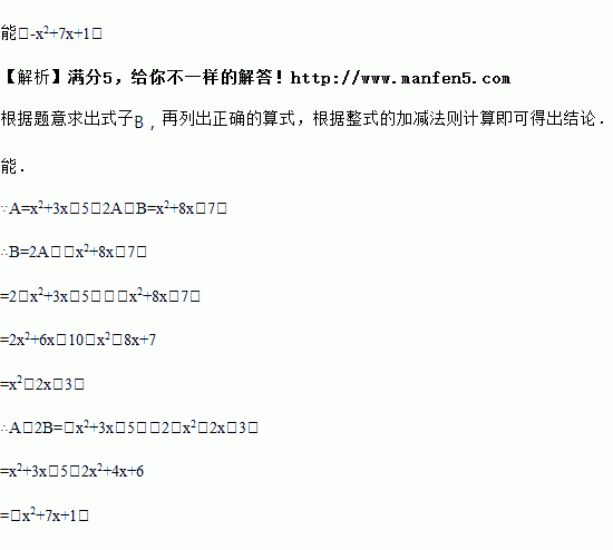 玲玲做一道题:“已知两个多项式A、B,其中A=x2+3x-5,计算A-2B的值.”她误将“A-2B”写成“2A-B”,得到的答案是x2+8x-7,你能帮助她求出A-2B的值吗?