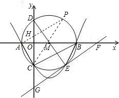 (2)由于△AOC和△MOD中,∠ACO和∠MDO的正切值相同,因此这两角也相等,可得出AC∥DE,也就能求出DE⊥CB,因此BC∥FG,由此可得出直线FG与直线BC的斜率相同,可先根据B、C的坐标求出直线BC的解析式,然后即可得出直线FG的斜率.那么关键是求出E点的坐标.连接CE,DC⊥CE,C点的纵坐标就是E点的纵坐标,在直角三角形DCE中,可根据DE,DC的长求出CE的长,也就能求出E点的坐标,然后根据E点的坐标即可求出直线FG的解析式.