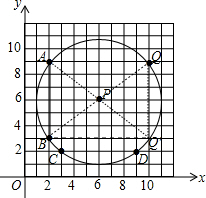 如图,平面直角坐标系中,点A(2,9),B(2,3),C(3,2),D(9,2)在⊙P上,Q是⊙P上的一个动点.