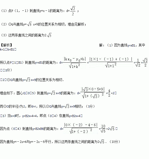 (1)求点P(1,﹣1)到直线y=x﹣1的距离;