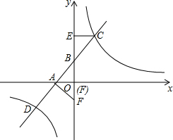 分析 (1)根据直线AB的解析式可找出点B的坐标,根据点C的坐标结合三角形的面积公式即可得出关于a的含绝对值符号的一元一次方程,解方程求出a值,再根据反比例函数图象上点的坐标特征即可求出双曲线的函数解析式;